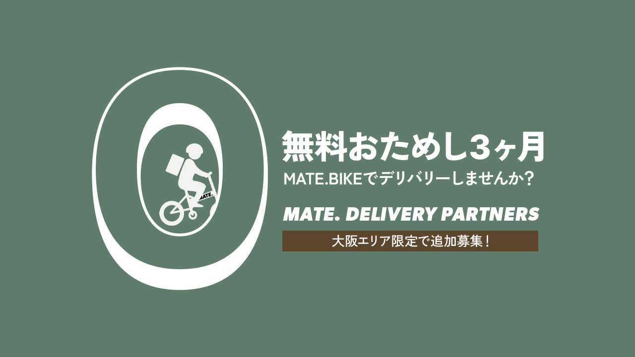 配達業務において新たな選択肢となりうるe-BIKEを体験できる機会を創出する目的で開催する”MATE. DELIVERY PARTNERS”の、大阪エリアでの採用枠を追加し再度募集を行います。