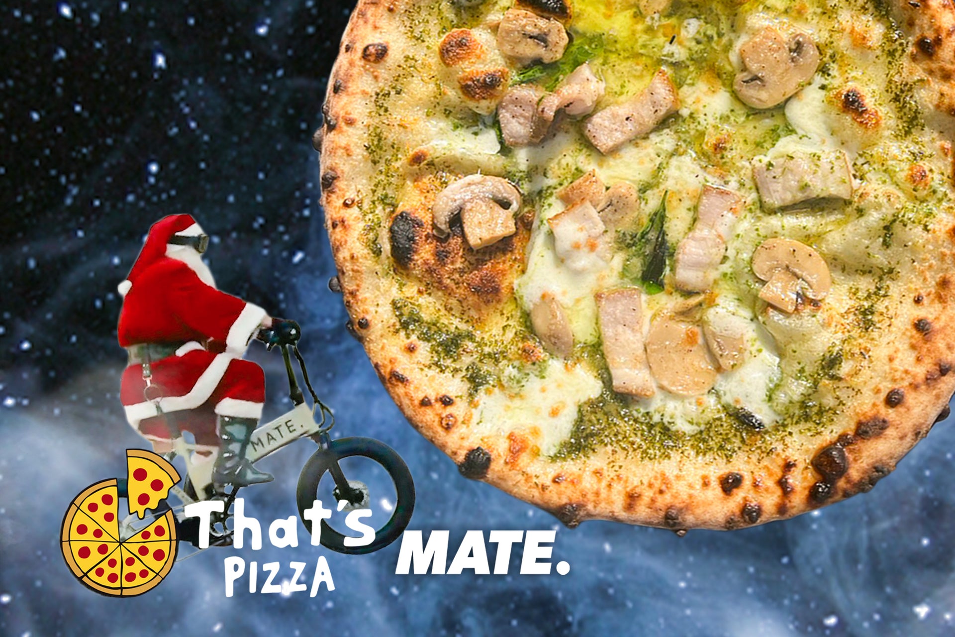 2023年12月24日(日)と25日(月)の2日間、MATE.オリジナルピザを20枚限定で、MATE.BIKEに乗ったサンタクロースがデリバリーします。