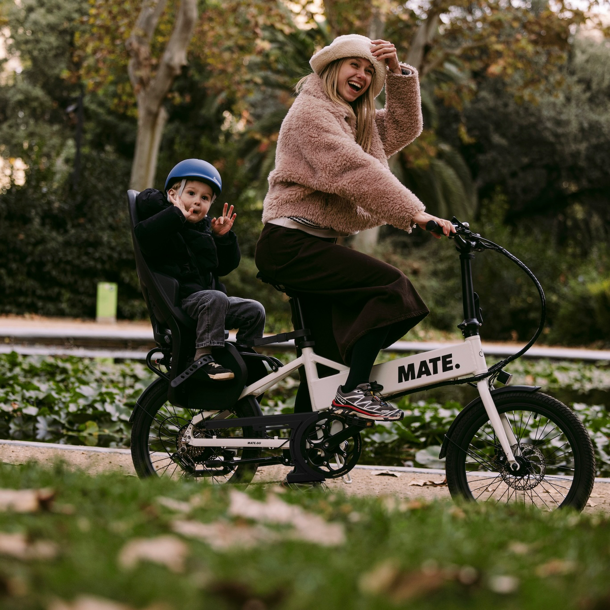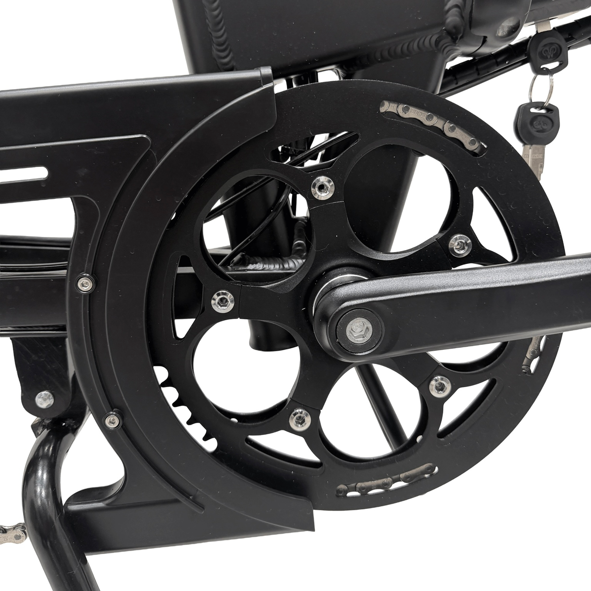 オイルや汚れの付着しやすいチェーンから衣服や肌への汚染を防ぎ、洋服の巻き込みを防止します。子育てをするすべての大人の自己実現や自己表現をサポートするMATE GO+に、白や淡色などの汚れが目立つカラーの服や、ワイドパンツやスカートなど裾が広がる服装でも気兼ねなく乗車できるように開発されました。