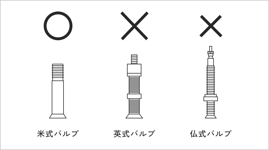 空気を入れる際は必ず、アメリカ式バルブをご使用ください。