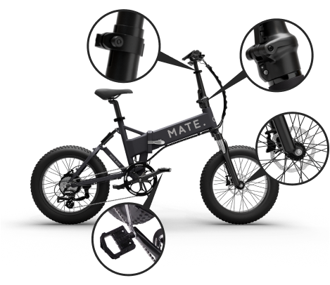 *MATE X機械式ディスクブレーキにつきましては鍵が2本となります。*フロントライト、フェンダーセット、リアキャリアは純正オプションとなり、製品には付属しておりませんのでご了承ください。* MATE.BIKE社製の自転車に、2年間限定の国内正規部品保証が付いています。( バッテリーは1年 )この期間内に、メーカーによる生産上の欠陥が見つかった場合は、当社の保証に従って対応させていただきます。自転車の多くの部品は、通常の走行や自然な摩耗により損傷する可能性があるため、タイヤ、ディスクブレーキ、チェーン、ブレーキパッドなどの部品は保証の対象外となります。詳細については、ご利用ガイドをご確認いただくか当社のMATE.BIKEオンラインストアのお問い合わせフォームにお問い合わせください。