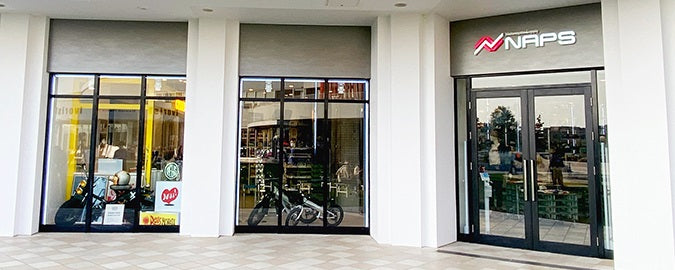 Community & Educateをコンセプトに掲げる関西初のフラッグシップストア。e-BIKEが新たな移動手段として根付くよう、メンテナンス講習やオーナーズミーティングなど、ローカルイベントを実施。内装デザインには、環境に配慮した素材を積極的に採用し、外壁にはチャージングスポットを設置しています。